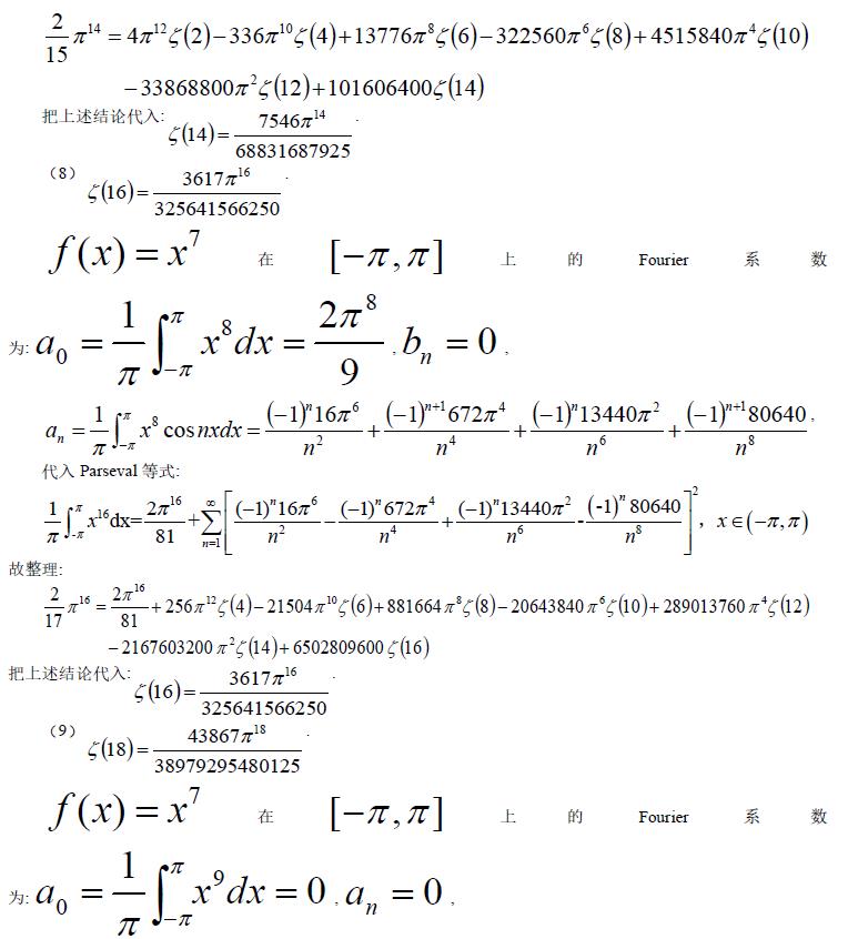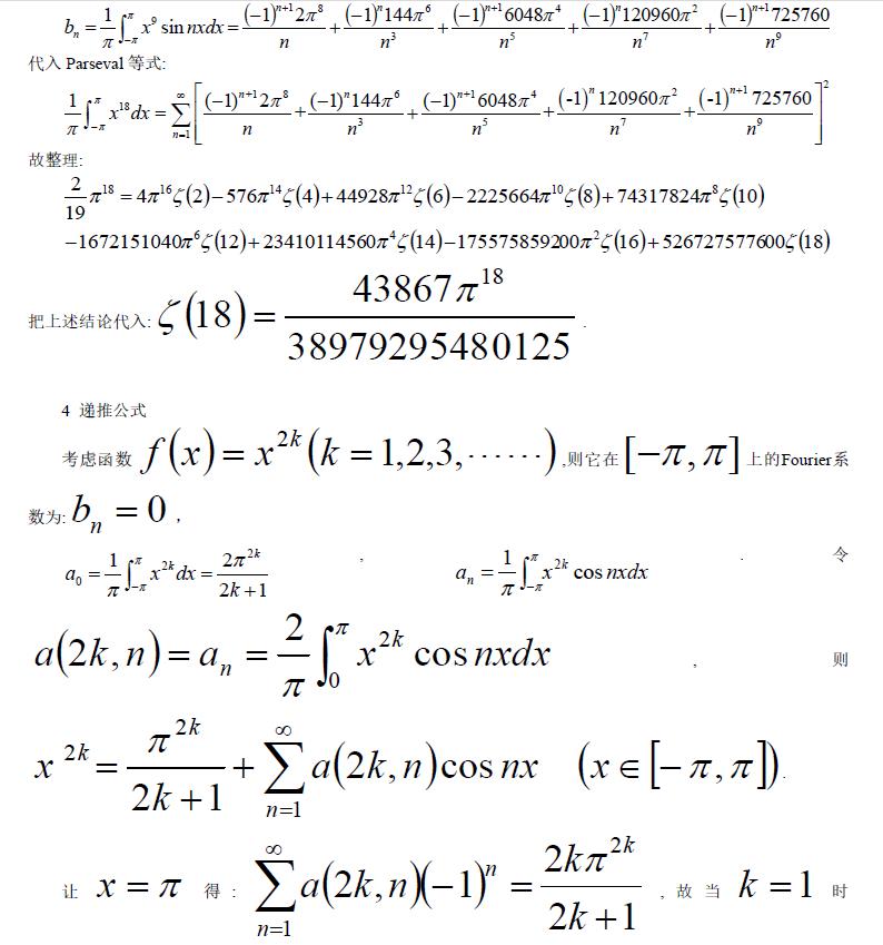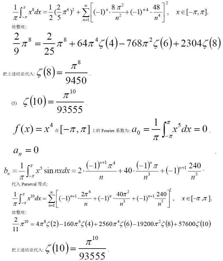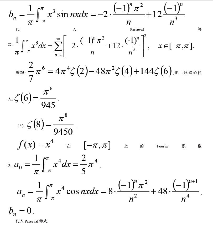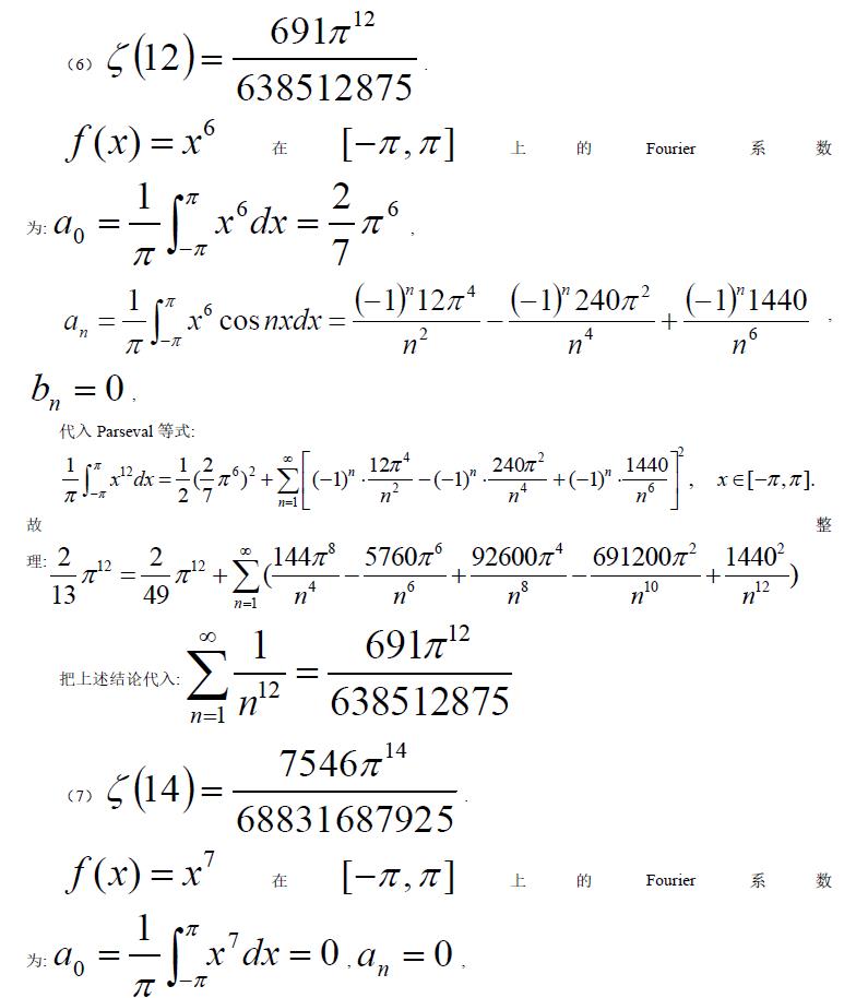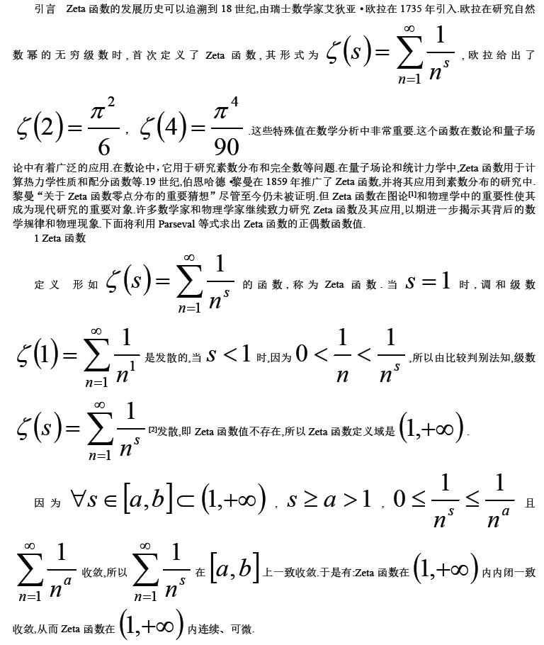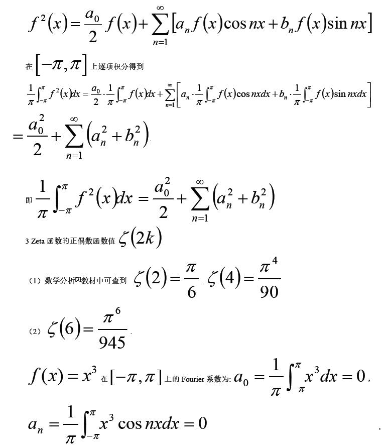关键词:Zeta 函数 Parseval 等式 Fourier 级数
