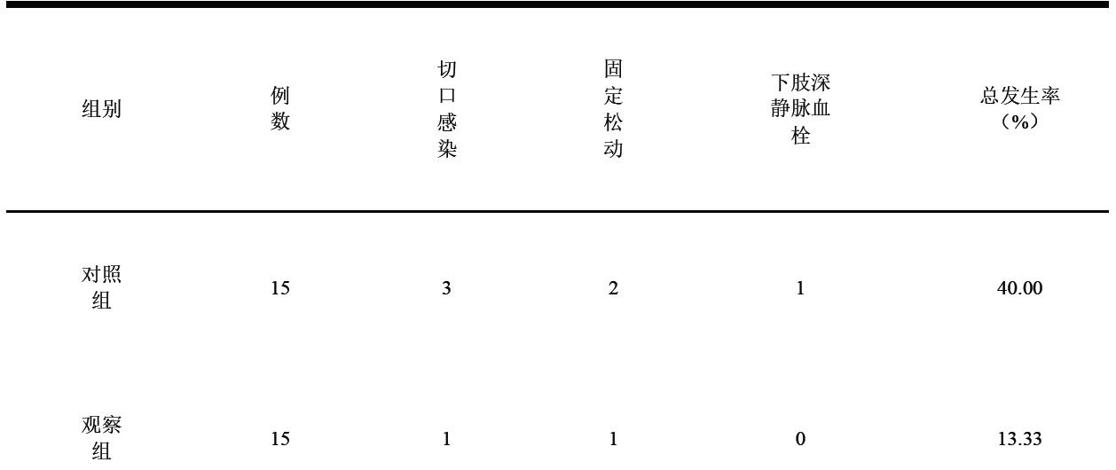 并发症:统计切口感染、内固定松动、下肢深静脉血栓发生率;