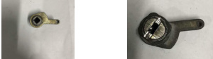 门锁反锁开启后是在下锁体的外侧用锁头总成控制开启,不管是单联动锁还是双联动锁,其内部反锁机构都是大同小异,要把锁头总成安装在上锁体上,这就需要在反锁机构上想办法重新开槽。拆下联动锁的反锁机构,用电焊把里外的两个方孔焊接封堵,再用锉刀搓平整,在门锁反锁状态下。在反锁旋钮朝向右侧方向开45度的小槽,槽宽2\~3mm,槽深10\~13mm,锁体组装完成后,安装复板门执手,便可实现内外反锁功能。