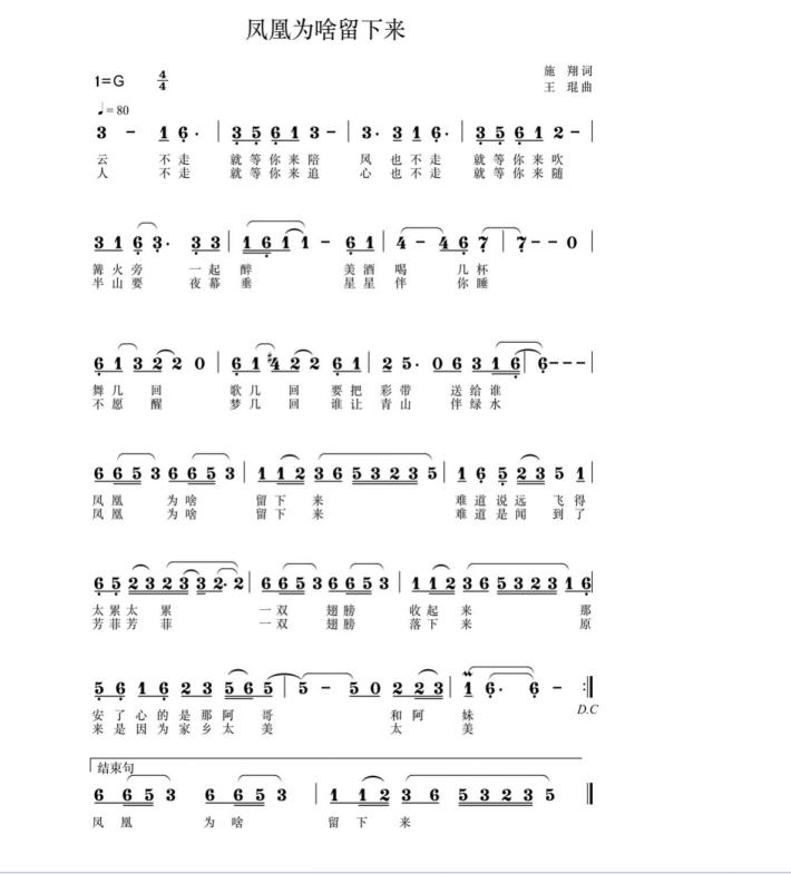 焦作市文化馆歌谱作品《凤凰为啥留下来》