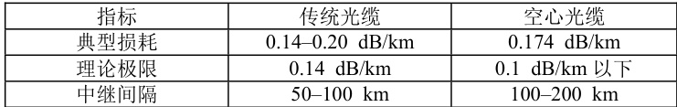 · 空心光纤:理论损耗可突破0.1 dB/km,且可通过优化微结构进一步降低。