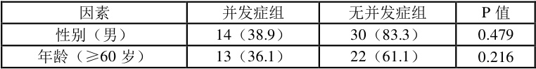 表 1:并发症相关因素比较表