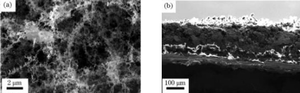 石墨烯材料的制备方法与工艺目前主要有机械剥离法、化学气相沉积法(Chemical vapor deposition,CVD)、电弧放电法、外延生长法、液相剥离法、还原氧化石墨烯法和激光诱导法(Laser Induced Graphene,LIG)。激光诱导石墨烯法是一种新发明的石墨烯制备工艺,主要是通过激光光热反应从而导致晶格振动会出现局部高温,使 C、N、O 原子之间的化学键发生断裂与重组,sp3碳原子杂化转化为 sp2碳原子杂化,N、O 原子重组后生成气体逸出,形成多孔的激光诱导石墨烯 LIG。以下图 1、图 2 为采用激光诱导法制备的石墨烯结构。