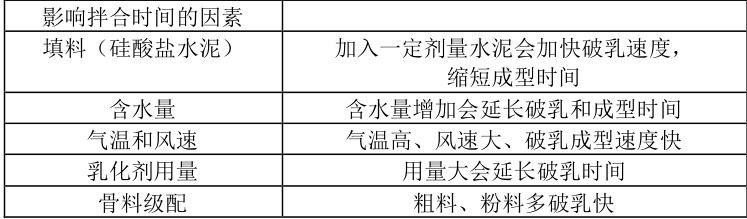 表 1 影响拌合时间的因素