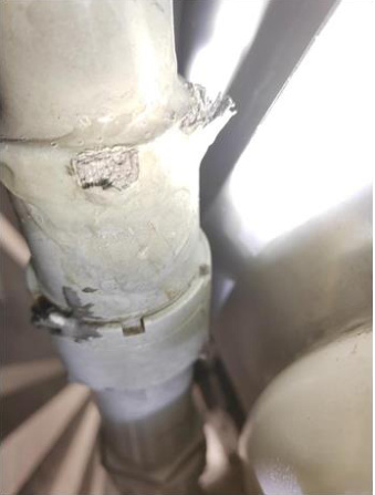 (2)铝基部件腐蚀。机腹蒙皮、鱼叉撑杆等铝基材料腐蚀初期表现为漆层鼓包、灰白色麻点,随后形成灰色絮状腐蚀产物 Al(OH)3e 由于铝的氧化膜自修复性,腐蚀进程隐蔽性强,需通过定期探伤或漆层状态监测识别。