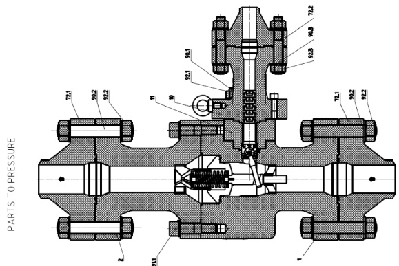 安装在上充泵出口的再循环阀厂家为德国施罗德(Schroeder),主阀通径DN100,法兰连接,主要由阀瓣、复位弹簧与小流量管线旁路阀组成;小流量管线通径DN50,拥有单独的启闭部件与节流部件。如图 1。