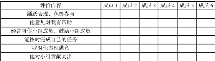 项目式学习成果面向的是学生、教师、专业人士等多方群体,自然也要接受不同群体从不同角度的评价。学生可以自评(见下表),也可以互评;小组内部可以进行组内评价(见下表),小组之间可以进行组间评价。生生互评的方式可以帮助学生了解同辈之间的看法和观点,能够取长补短、互相学习。