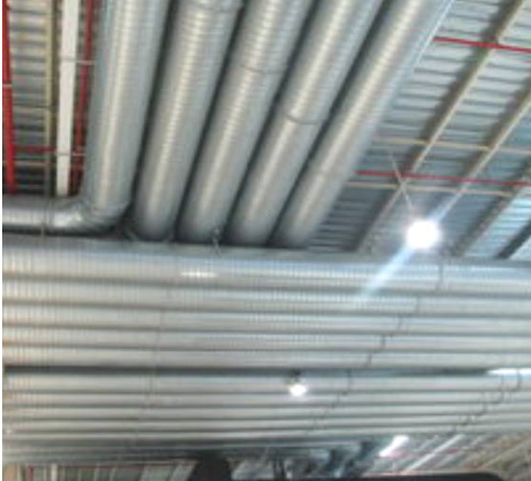 在安装过程中,应特别注意管线的走向和固定方式,避免出现交叉、重叠等不合理现象,以减少空气流动阻力并提升系统的整体效率,如图3。同时,管道连接处的密封处理至关重要,需选用合适的密封材料,确保连接处无泄漏。此外,对于需要保温的管道,应选择优质的保温材料,并确保其厚度符合设计标准,以防止热量损失和能耗增加。在完成管线安装后,建议进行全面检查,以确保所有管线的安装质量符合规范要求