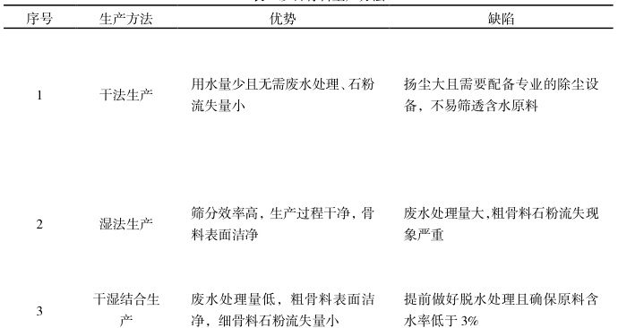 表1.砂石骨料生产方法