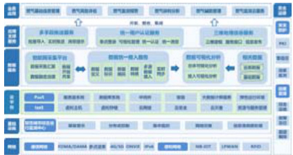 平台网络层采用NB-IOT、Lora 窄带物联网等技术建设现场感知网络,采用OFDM、IPv6、宽窄融合等技术建设通信网络,共同组成实时、高效、可靠、全覆盖的网络,为平台提供各部门、多层级的网络数据通道。