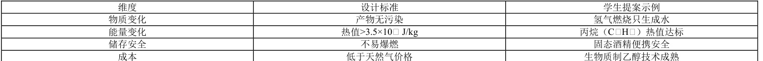 (3)创新设计能力:基于环保、安全、热值标准设计未来理想燃料方案3.素养目标