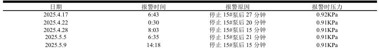 表 3-1 302 储罐高压报警原因及时间表