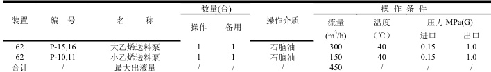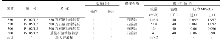 表 4-1 储罐石脑油输入线出泵压力及最排量表
