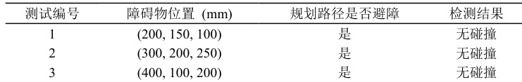 系统碰撞检测功能的有效性通过多组复杂路径测试验证。实验设置多种潜在障碍物,使用 BoxCollider 组件结合 OBB(Oriented Bounding Box)相交检测算法检测碰撞风险。结果显示,机械臂能够在复杂环境中避开障碍物,成功完成运动任务,未发生碰撞情况,碰撞检测准确率达到 100% 。具体数据见表 2。