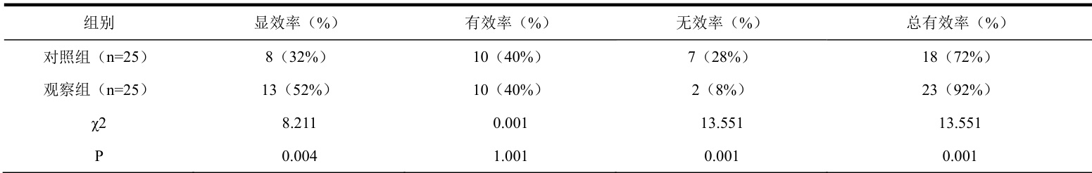 结合表1 数据结果得知,观察组患者治疗总有效率较对照组患者更高,组间有统计学意义( iP<0.05 )。