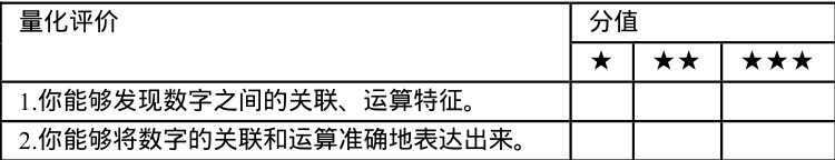 首先“ 数字乐园” 由“ 数字找家” “ 数字接龙” 与“ 数字计算” 三个小游戏构成,分别对应学生的兴趣特点、思维能力和数学经验,学生通过小游戏感受真实的数字应用,更直观地发现数字特征,并用计算呈现数字在运算、大小等方面的特点,以此培养他们对生活中数字的观察能力,巩固数学学科基本知识与技能。其次,“ 隐藏的数字” 旨在提高学生对数字关联和运算的感知能力。教师借助数学学习平台的数字展示功能,分别上传实际生活中的数字问题、学生解决的数字难题以及数学家们对数字的研究成果,利用拆分、组合、对比、推演等工具处理数字,引导学生通过观察、对比和交流进一步从多角度、多方面感知数字的特点和数学视角下的运算与关联特点,指导学生利用数字卡片制作数字运算模型并展示在学习板上,同时利用小练习与量化评价表(见表 1),将学生新知与旧知融会贯通,提高学生数字感知能力。