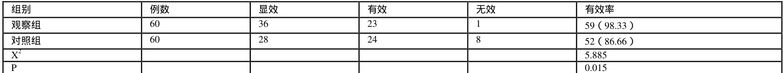 (2)比较患者最终的治疗效果:显效、有效、无效。