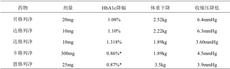 表1:不同SGLT2i治疗24 周的主要疗效指标比较