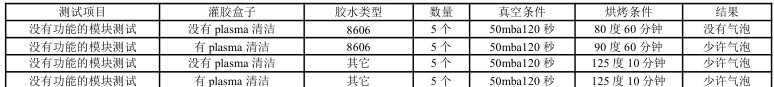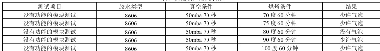 胶水的粘度也是我们需要考虑的因素之一。通过不同的参数对比看是否有气泡产生,建议胶水的粘度不宜过大。当测试了真空时间、抽