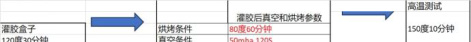 灌封完毕应及时进入加热固化程序。胶水灌完后可能有非常小的气泡肉眼无法看见,但是通过加温固化后就会体现出来,我们针对胶水的固化调节进行了调整测试。发现胶水固化后还是出现了气泡,供应商给出来的条件是80℃60 分钟,我们围绕了不同参数做出来后,发现产品还是有气泡产生。我们排出了固化条件参数不对的问题,接下来我们也考虑手动灌胶的气泡问题。