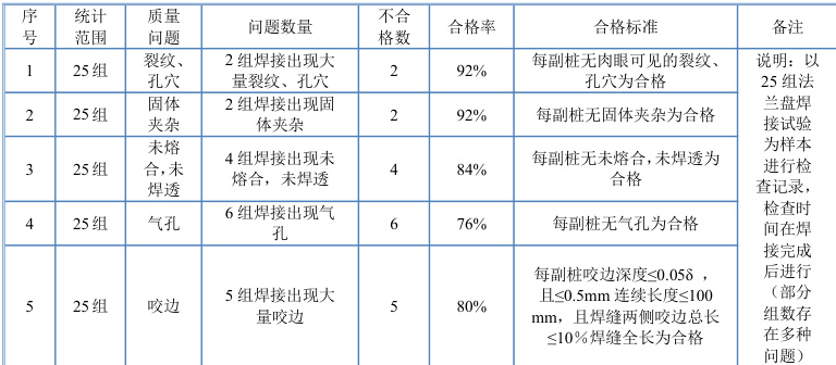 在以上改进措施实施后,再次对 PHC 管桩焊接接桩一次验收合格率进行复查,主要是针对上文中指出工程中出现的气孔;未熔合、未焊透;超过规范 >T 固体夹杂的问题重点检查,共计检查后期施工100 组桩,采取相应措施后,焊接质量 量1 个、未熔合、未焊透1 个,超过规范的咬边3 个、裂纹、孔穴1 个、 固 94% ,经工艺优化后,日均施工效率提升至10 根管桩,单根补焊耗时压缩 期7 天,降低返工成本3500 元。项目不仅超额达成预设的90%质量目标,更通过系统 了焊接质量、施工效率与管理水平的三重提升。
