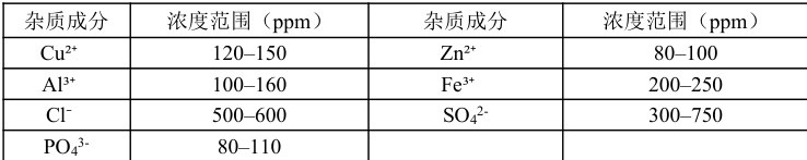 表 1 电镀废液初始杂质含量