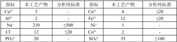 该工艺所得产品,产物纯度 299.8% ,平均铬回收率为 98.5% ,经XRD与ICP-MS分析,杂质含量符合分析纯标准[8]。最终产物杂质含量见表2。