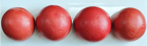 红曲菌是目前世界上唯一生产食用色素的微生物,经研究证明,红曲色素热稳定性及光稳定性都较好,对 ph 值的稳定性也较好[5],但红曲粉因为气味较特殊,不适合在面点中大量添加,只可少量使用。同时红曲粉的色价直接影响其在面粉中的添加量。色价越高,着色力越强,所需用量越少。例如 3000 色价的红曲粉用量为面粉的 0.1%0.3% ,色价为 1000 的红曲粉添加量为面粉的 0.5%-1.5% ,当然随着红曲粉用量的增多是会影响花馍的香味和口味的,因此在花馍的生产工艺中,想调制颜色较深的红色面团则使用色价更高的红曲粉,调制颜色较浅的红色则可使用色价较低的红曲粉。