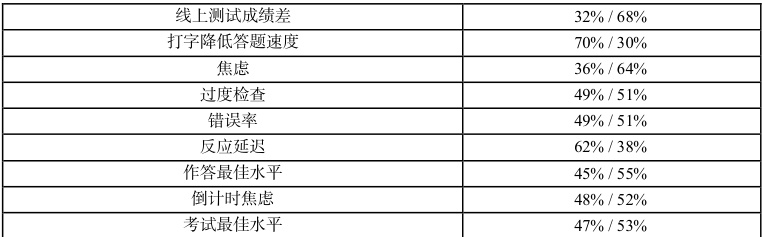 从测试系统方面看,第一,在机考中,反应延迟体现在学生不能用笔在题目中划出重点单词或句子辅助思考,在重点句子上需反复阅读以增强理解。这跟传统纸笔考试对比存在答题反应延迟。