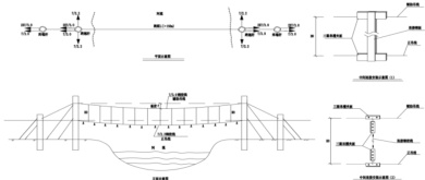 架设跨河吊线应根据杆距,选取相应杆路及吊线形式进行跨河光缆敷设。木电杆梢径应比普通场景提高 2 个等级,跨河杆路进行石(笼)护墩加固。飞线跨越杆杆上光缆最终容量达到 4 条或 4 条以上时,宜采用 H 杆结构,跨河吊线结构示意如图 1 所示。