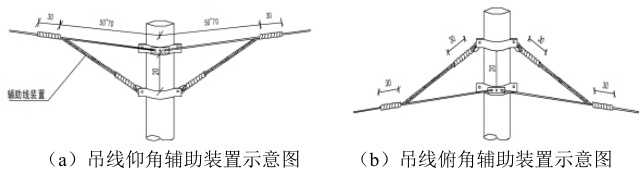土质如果是坚石或者无法挖坑,应当用坚石砌筑石围稳固杆根。石围子地面以上高度不小于 1 米,砌筑用砂浆成分配比为水泥 1:3 毛石。如图 2(a)和(b)所示分别为仰角与俯角辅助装置的结构设计,适用于坡度变更大于 5% 的场景。