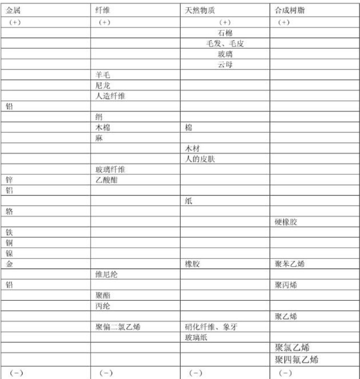 以下是静电起电序列,也称为摩擦起电顺序表。