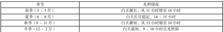 表 2.3 宁津县光照的周期性变化与激素水平调控