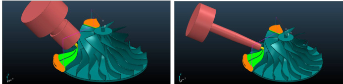其实整体分流叶轮叶片的精加工方法大致分为两大类:球刀拟合精加工法和侧刃加工法。侧刃铣削加工一般是针对直纹叶片曲面,这个方法在各个企业得到了广泛的使用,加工效率及精度都较高,已较成熟。而我们加工的整体分流叶轮的叶片不是直纹曲面,而是非直纹空间曲面,必须使用球刀加工,采用拟合的方式加工出来。以上的整体分流叶轮加工的优化,希望得到各位同行的认可,同时能起到相互借鉴的作用。