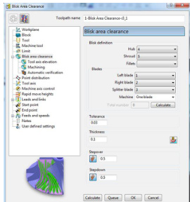 Blisk Area Clearance 流道粗加工Blade Finishing 叶片精加工Hub Finishing 轮毂精加工根据图纸和叶轮 3D 模型确定加工刀具分别为粗加工—D4R2 球刀粗加工—D3R1.5 球刀精加工—D3R1.5 球刀