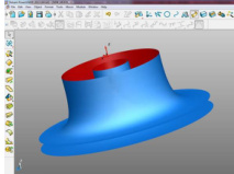 如图 3-1 所示,叶轮粗加工策略里面要分别设置 Hub、Shroud、Fillets、Left blade、Right blade、Splitter blade,现 PowerMILL 软件中导入的模型有左叶片、右叶片、子叶片,加工策略中要设定的轮毂在模型中是以很多碎面的形式存在的,而套参数模型在导入的模型里面是没有的,所以套参数曲面和轮毂参数曲面需要在 PowerSHAPE 软件中创建,如图 3-2 及图 3-3 所示。创建好后直接复制再粘贴到 PowerMILL 软件模型中即可。在策略中选择