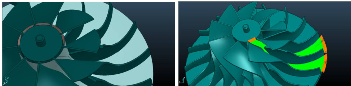 提高加工效率在刀具路径上优化主要是从优化叶轮开粗刀路着手,由于分流叶片的存在,分流叶片和主叶片在叶片底部之间的巨轮变得很小,常规的加工方法是选择一把加工直径小于分流叶片和主叶片底部之间距离的刀具,一把刀具开粗所有的加工余量。这样导致我们开粗及精加工所使用的刀具直径比较小,在上面的刀具路径中使用 R2 的球刀开粗,刀具半径相对较小,再加上使用的刀柄是普通的 ER 刀柄,刀具伸出长度较长,导致切削深度和切削行距选择较小,切削效率低。我们可以通过下面的方法提供叶轮的加工效率:1.选择不同直径大小的刀具分层开粗 2.精加工时候靠近叶片外侧的面可以使用大直径的球刀进行精加工,加工到子叶片和主叶片之间距离较小的地方,更换加工刀具半径小点的刀具继续向叶片根部精加工,大的刀具切削行距及步距相对小直径刀大很多,所以加工效率会提高很多。在下面优化程序的时候先选择半径大的刀具对叶轮进行开粗,把能开粗的地方先粗加工掉,剩下的残留材料再用半径小的刀具继续开粗,直到去除所有的残余材料,给叶轮精加工留下均匀的足够的余量,便于精加工。