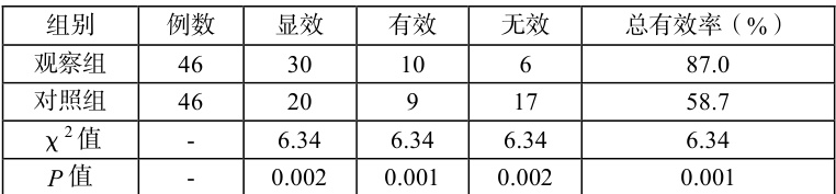 表 1 两组病患治疗效果对比