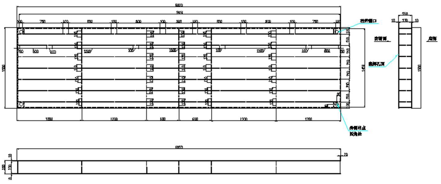 本工程钢栈桥Ⅰ区使用 6000*1500*250mm , 4500*1500**50mm ;Ⅱ区使用 6000*1500*250mm ;Ⅲ区使用 6000*1500*250mm ;Ⅳ区 4 块 6000*1500*250mmo 。现以 6000*1500 钢栈桥计算书为例进行钢栈桥静态、动态承载计算,经计算软件计算后可满足要求。[4]