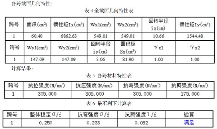 钢栈桥板在施工过程中搭接在栈桥梁上。设计均布荷载小于等于 25kPa,单位施工车辆满载小于等于 65t,单跨内集中荷载小于等于 40t 。按照计算软件中单向板计算,钢梁在两端呈现简支梁,分别计算其在均布荷载和集中荷载下的稳定方面的问题(短方向稳定计算长度偏安全按 3m 考虑)。