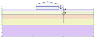 基于 Plaxis 软件建立二维模型,该软件在岩土工程数值模拟 方面具有广泛的应用和较高的可信度。模型范围根据基坑开挖影响范围确定,横向取基坑开挖宽度的3-5 倍,纵向深度取 挖 以消除 界效应对模拟结果的影响。采用HS(Hardening Soil)本构模型模拟土体行为,该模型能够较好地反映土体的非线性 性及硬化特性 符合实际工程中土体的力学响应;线弹性模型模拟围护桩及支撑结构,考虑到围护桩及支撑结构在受力过程中变形相对较小,线弹性模型能满足模拟精度要求。