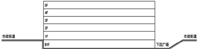 本次项目作为商业综合体,总建筑面积24 万平米,其中商业体量约8 万平米,仅地下室的永辉超市面积就达到了8000 平米。拥有如此体量的商业面积,各楼层的可达性则至关重要,如前一节所述,通过设置双首层来增加人流对于二层楼面的可达性,那通过图 4.3 设置下沉广场的方式也是一种将人流快速导入到地下一层的手段。