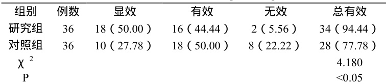经计算护理总有效率,研究组明显较对照组高( P<0.05 )。见表1。