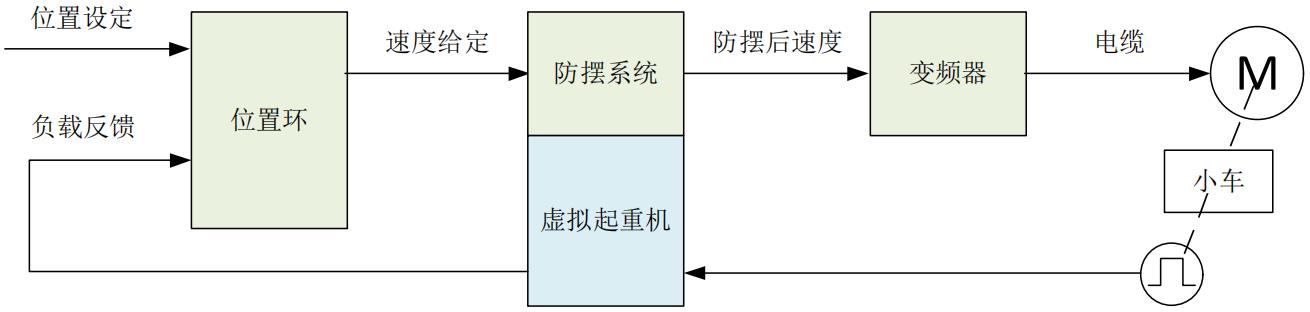 防摇系统开启后,会导致小车速度不再跟随原始的给定,进而会影响定位控制的精度,导致生产节奏降低。防摇系统在防摇的同时,可以根据数字虚拟系统计算出减速停车的精确位置,配合PLC 可以实现快速定位过程中的防摇摆,提高生产效率。