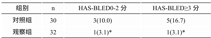 。高风险患者(HAS-BLED≥3 分)中,观察组出血事件减少更显著(表2)。