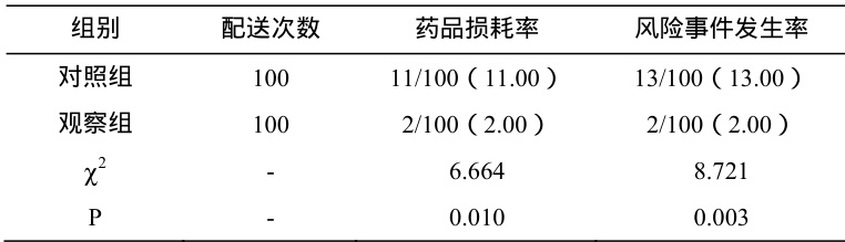 1.3 观察指标与评价方法 统计两组药品损耗及风险事件发生率。