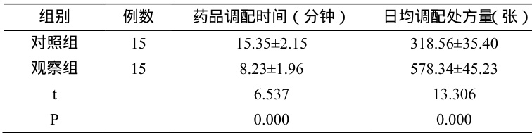观察两组药品调配效率,统计药品调配时间和日均调配处方量。
