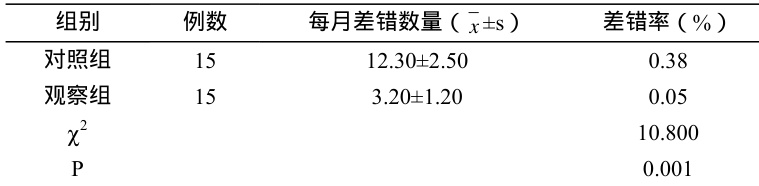观察组药品调配差错率显著低于对照组, P<0.05 。见表 2
