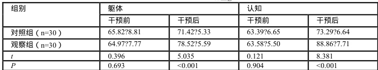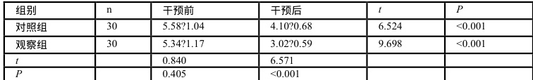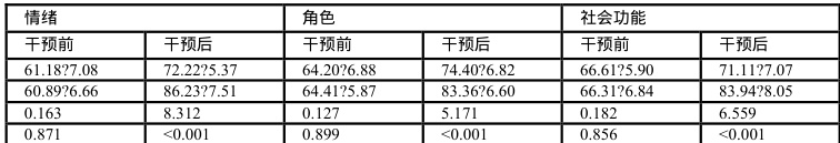 (3)生活质量:于干预前后采用 EORTC 生命质量测定量表(QLQ-C30)评估,包含躯体、认知、情绪、角色、社会功能几个维度,共 30 个条目,各维度分值为 $0 \mathrm { - } 1 0 0 \stackrel { } { \mathscr { D } }$ ,分值与生活质量成正比。