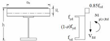 其中: Vpl,Rd 为组合梁抗剪承载力, VEd 为设计剪力。